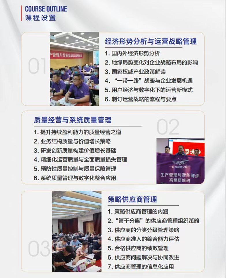 | 招生对象 | 制造型企业主管生产的厂长、副厂长、生产总监、车间主任及负责生产的其他负责人 |